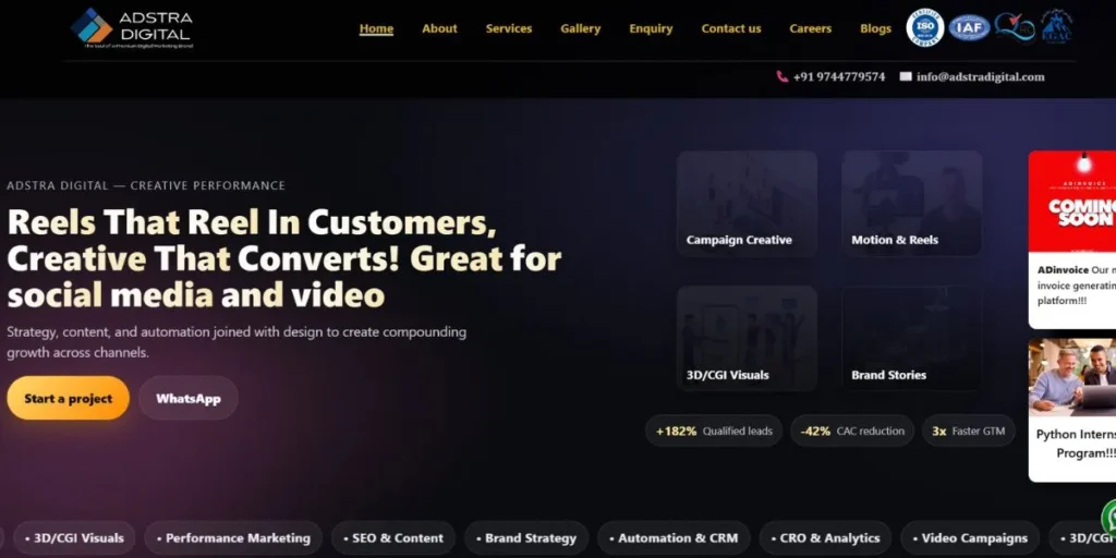Adstra Digital is a company that focuses on enhancing the performance of Kozhikode-based companies using online marketing strategies that are performance-based. Although they have a small number of employees, they provide individual care and attention to all clients. They have democratized online promotion by ensuring that it is accessible to businesses of any size, while still maintaining service quality.