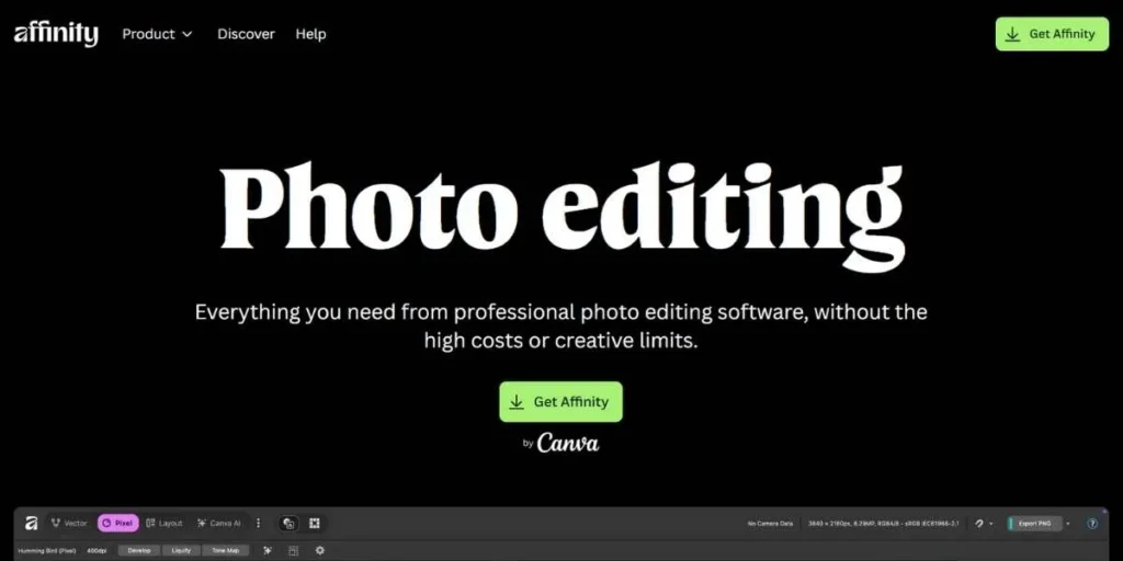 The new application of Affinity Photo has successfully become the best alternative to Photoshop among individuals who are not willing to spend on subscriptions. It is a recent free offering that has been acquired by Canva and provides professional desktop features such as RAW editing, HDR merging, frequency separation, and advanced retouching. The interface is sleek and contemporary, with performance competing with or even surpassing other options, making it one of the top best Photoshop alternatives for both beginners and professionals.