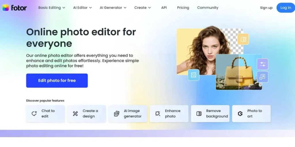 Fotor is a simple and quick internet photo editing software. It is popular among social media creators; it has one-click enhancements, templates, and AI-based tools that provide quick results. Although it is not as strong as Photopea when it comes to advanced editing, Fotor is fast with quick fixes and batch processing, making it one of the best free Photoshop alternatives for creators who want speed and efficiency over complex tools.