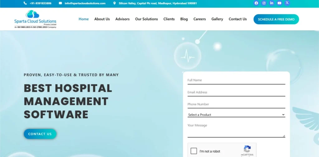 Sparta Cloud Solutions is a specialized company and one of the leading software companies in Madhapur Hyderabad, focusing on the development of software products for the healthcare and manufacturing industries. Sparta serves over 1,500 customers, empowers 9,600+ doctors, and partners with 150+ manufacturing firms to provide cloud-based solutions that drive efficiency and growth. The company’s products are developed through thorough research across different fields, under the guidance of international researchers and industry scholars.